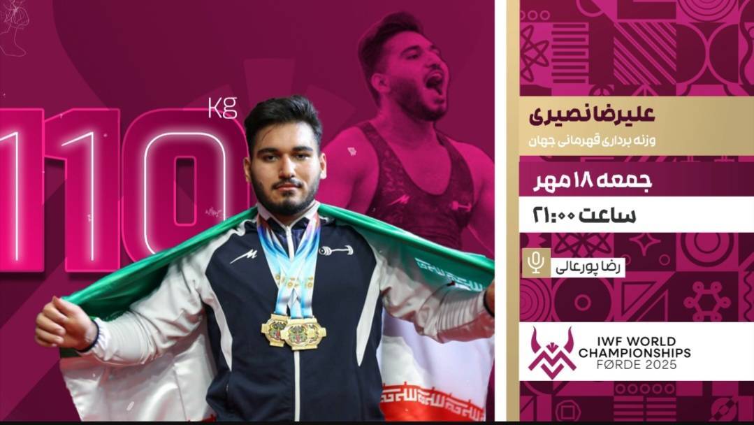 به گزارش پایگاه اطلاعرسانی سیما، برنامه «مثبت ورزش» در چارچوب پنجمین روز از رقابت های وزنه برداری ملی پوشان کشورمان، جمعه ۱۸ مهر از ساعت ۲۱، رقابت علیرضا نصیری و ابوالفضل زارع نمایندگان تیم ملی کشورمان در وزن ۱۱۰ کیلوگرم را با گزارشگری رضا پور عالی و به صورت زنده روی آنتن شبکه ورزش پخش می کند.