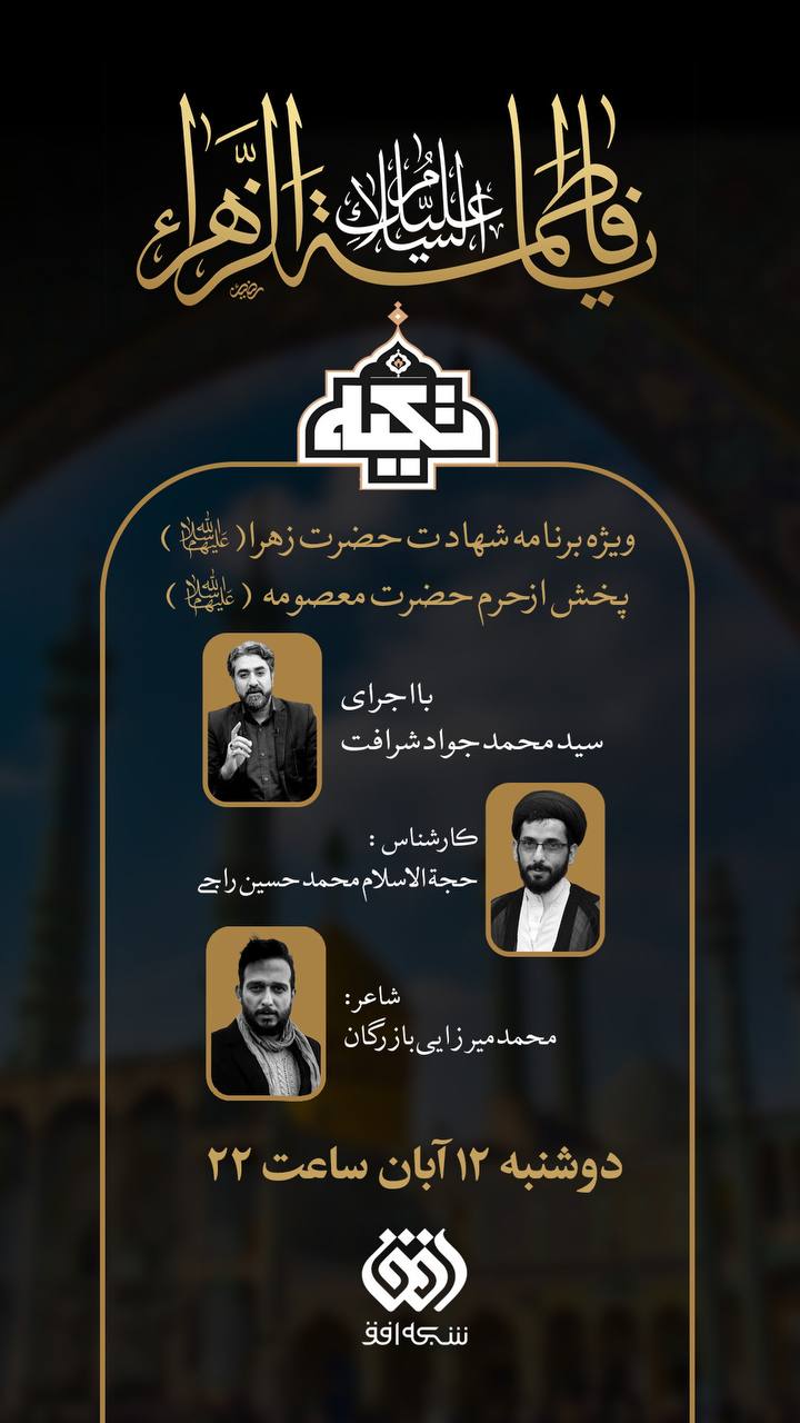 شبکه افق با پخش این ویژهبرنامه از جوار بارگاه کریمه اهلبیت(س)، تلاش دارد مخاطبان را به تامل دوباره در سیره، مقام و مجاهدتهای حضرت زهرا(س) دعوت کند.