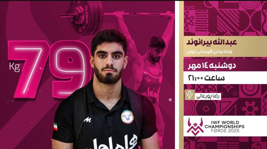 عبدالله بیرانوند، نخستین نماینده تیم ملی ایران در رقابتهای وزنهبرداری قهرمانی جهان ۲۰۲۵، امشب از ساعت به میدان میرود و پیکار قهرمان تیم ملی کشورمان به صورت مستقیم از شبکه ورزش پخش خواهد شد.