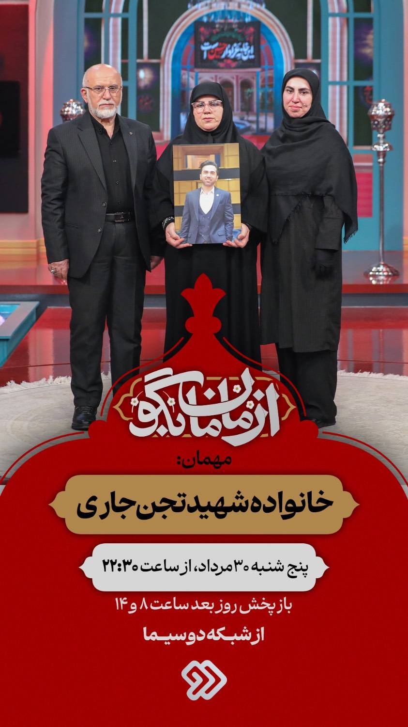 بازخوانی زندگی شهید مجید تجن جاری در «از مامان بگو» امشب، پنجشنبه 30 مرداد، برنامه «از مامان بگو» میزبان خانواده شهید مجید تجن جاری از نخبگان حوزه هوش مصنوعی خواهد بود. جوان فعال و نخبه ای که در جریان دفاع مقدس دوازده روزه در منزل شخصی خودشان که نزدیک محل انفجار بود، به شهادت رسید. پنج شنبه 30 مرداد 1404 ادامه...