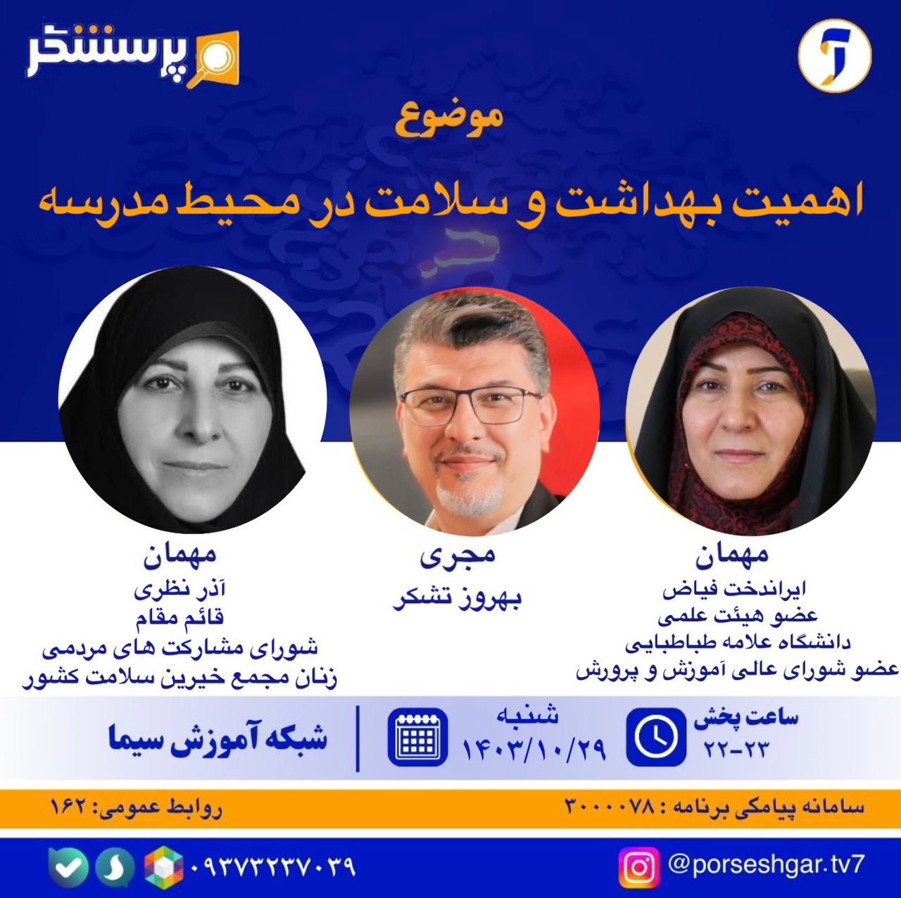 وزیر آموزش و پرورش در شبکه آموزش پاسخ خواهد داد در برنامه «پرسشگر» شبکه آموزش سیما وزیر آموزش و پرورش به سوالات مردم پاسخ خواهد داد. جمعه 26 آبان 1402 ادامه...
