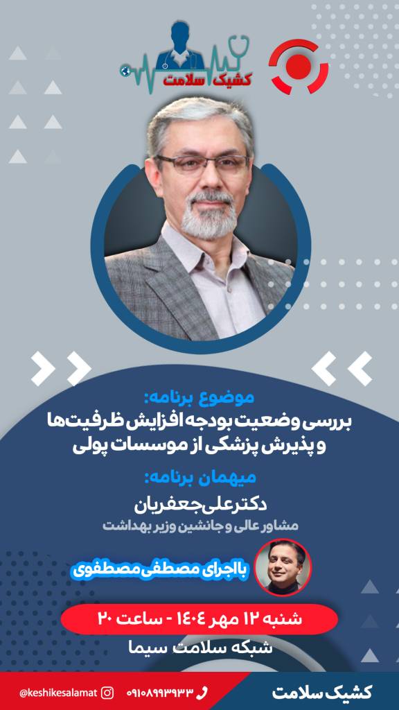 «کشیک سلامت» امشب با بررسی بودجه افزایش ظرفیتهای پزشکی روی آنتن میرود برنامه زنده «کشیک سلامت» امشب با حضور دکتر علی جعفریان، جانشین وزیر بهداشت، به بررسی وضعیت بودجه افزایش ظرفیتها و پذیرش دانشجوی پزشکی از مؤسسات پولی میپردازد. شنبه 12 مهر 1404 ادامه...