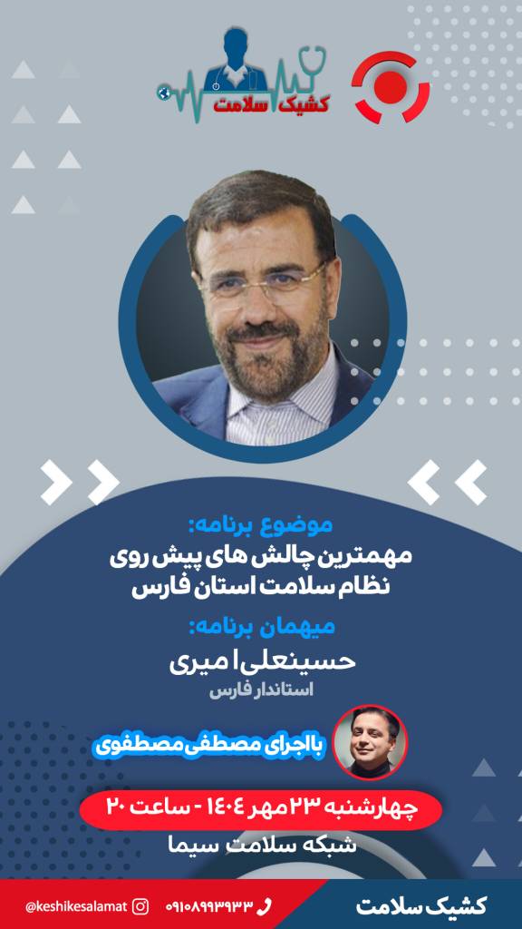مهم ترین چالش های پیش روی نظام سلامت استان فارس در «کشیک سلامت» امشب در تازهترین قسمت از برنامه زنده «کشیک سلامت»، چالشهای نظام سلامت استان فارس با حضور دکتر حسینعلی امیری، استاندار فارس مورد بررسی قرار میگیرد. چهار شنبه 23 مهر 1404 ادامه...