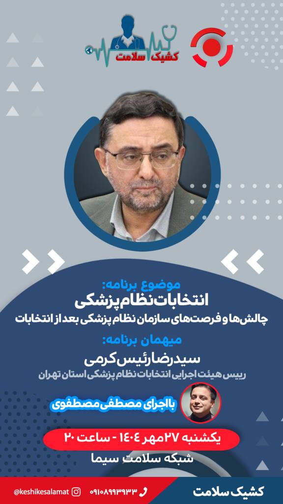 بررسی انتخابات نظام پزشکی در «کشیک سلامت» شبکه سلامت برنامه زنده «کشیک سلامت» امشب به تحلیل و بررسی انتخابات نظام پزشکی و واکاوی چالشها و فرصتهای پیشروی این نهاد مهم پزشکی کشور میپردازد. یک شنبه 27 مهر 1404 ادامه...
