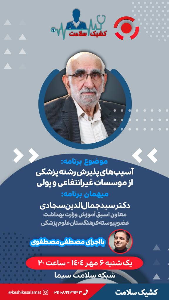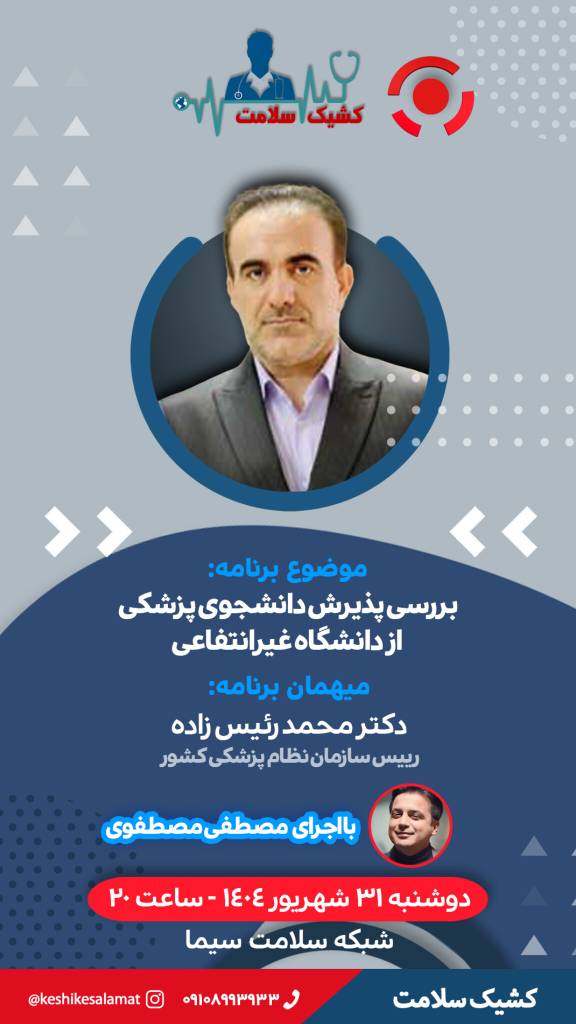 «کشیک سلامت» به سراغ چالشهای پذیرش پزشکی غیرانتفاعی میرود برنامه زنده «کشیک سلامت» یکشنبه ۶ مهرماه به بررسی موضوع «آسیبهای پذیرش رشته پزشکی از موسسات غیرانتفاعی و پولی» میپردازد. شنبه 5 مهر 1404 ادامه...
