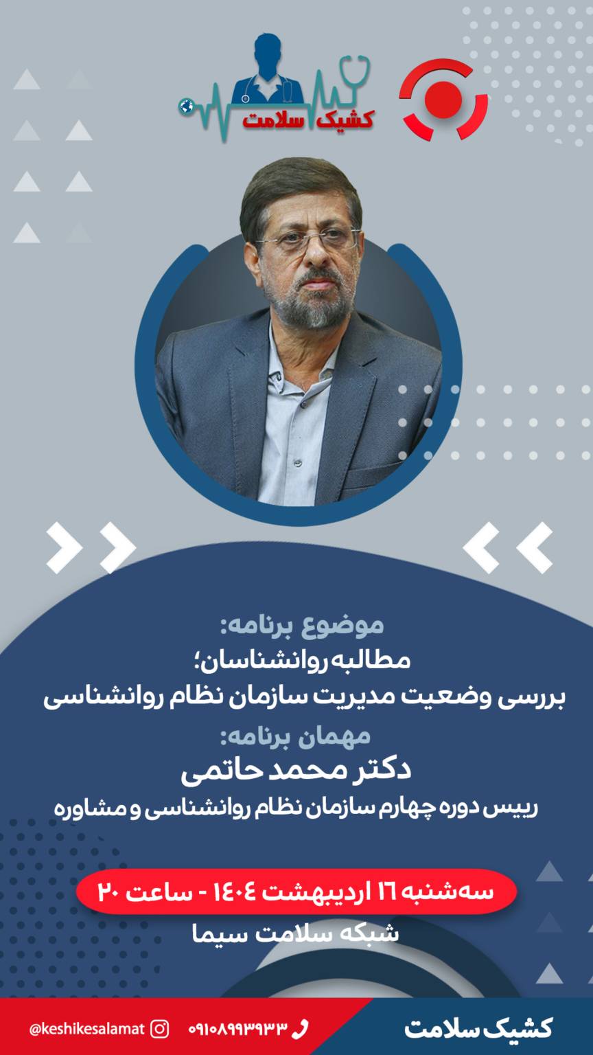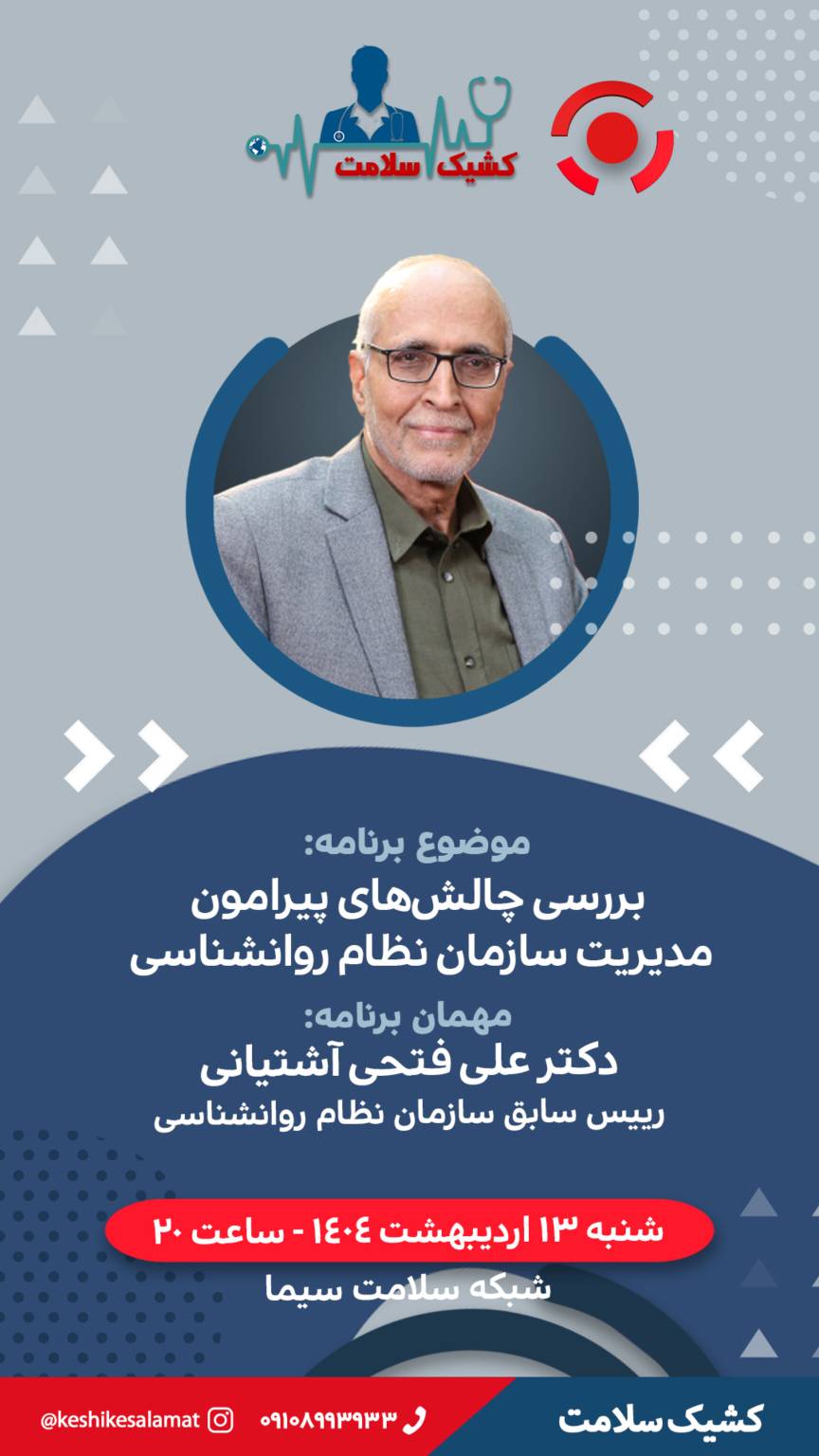 بررسی چالشهای پیرامون مدیریت سازمان نظام روانشناسی برنامه زنده «کشیک سلامت» با موضوع بررسی چالشهای پیرامون مدیریت سازمان نظام روانشناسی، روی آنتن شبکه سلامت می رود. شنبه 13 اردیبهشت 1404 ادامه...