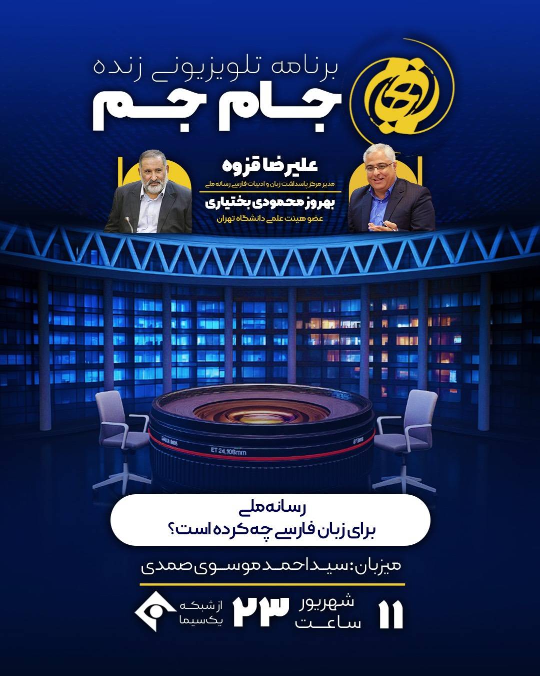 بررسی نقش رسانه ملی در پاسداشت زبان فارسی در برنامه «جامجم» شبکه یک برنامه تلویزیونی «جامجم» امشب، سهشنبه ۱۱ شهریور ساعت ۲۳ با موضوع «رسانه ملی برای زبان فارسی چه کرده است؟» از شبکه یک سیما پخش میشود. سه شنبه 11 شهریور 1404 ادامه...