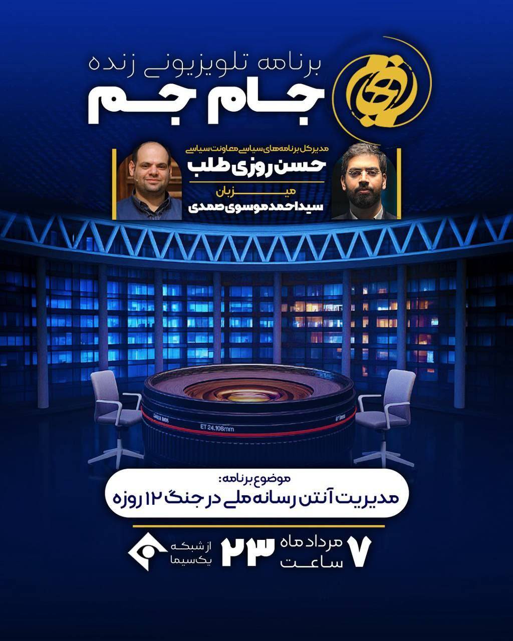 بررسی مدیریت آنتن رسانه ملی در جریان جنگ ۱۲ روزه در برنامه «جامجم» برنامه تلویزیونی «جامجم» در تازهترین قسمت خود به بررسی نحوه مدیریت آنتن رسانه ملی در خلال جنگ ۱۲ روزه خواهد پرداخت. سه شنبه 7 مرداد 1404 ادامه...