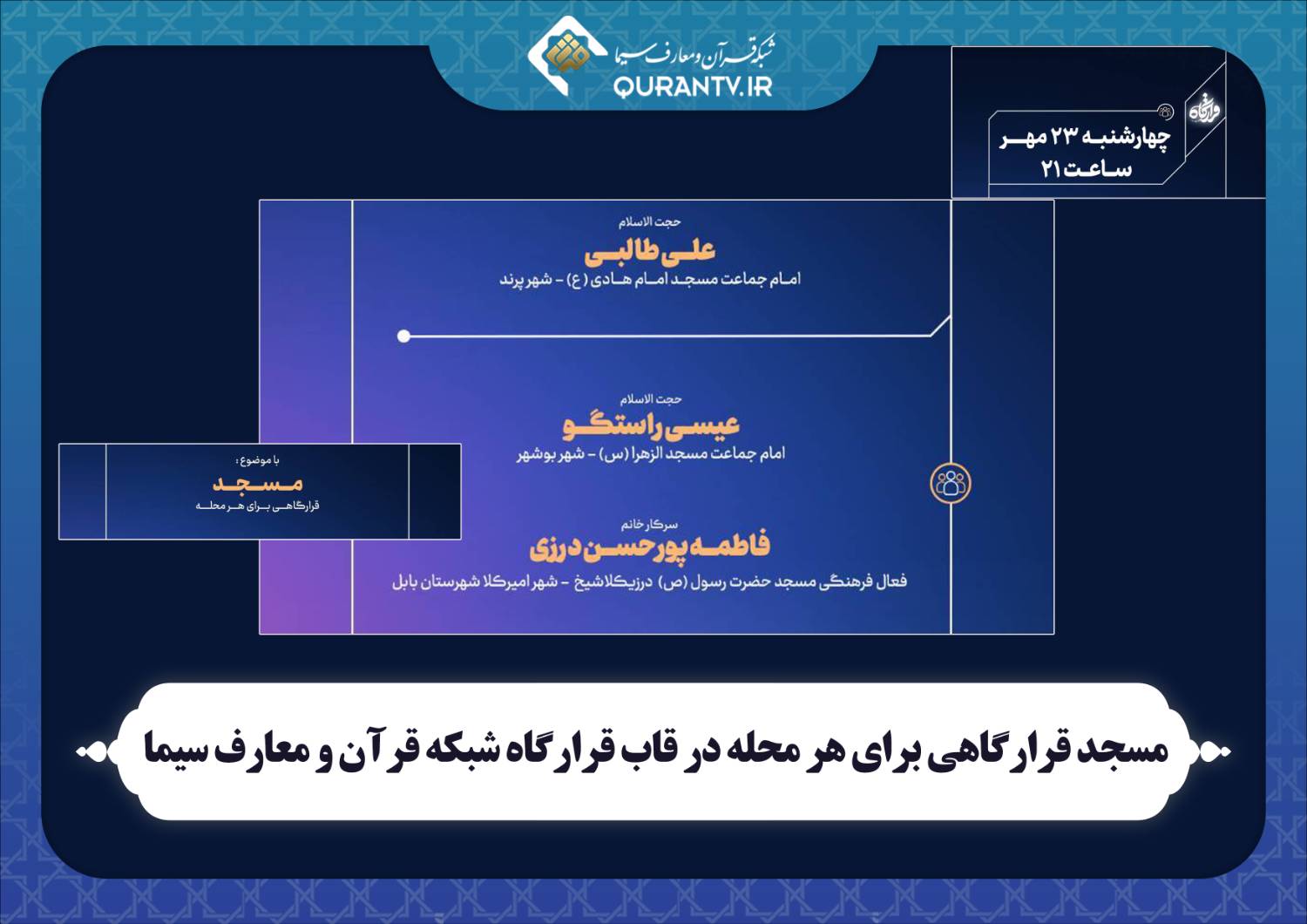 مسجد قرارگاهی برای هر محله در قاب «قرارگاه» شبکه قرآن و معارف برنامه «قرارگاه» چهارشنبه 23 مهرماه با موضوع مسجد قرارگاهی برای هر محله از شبکه قرآن و معارف سیما پخش می شود. چهار شنبه 23 مهر 1404 ادامه...
