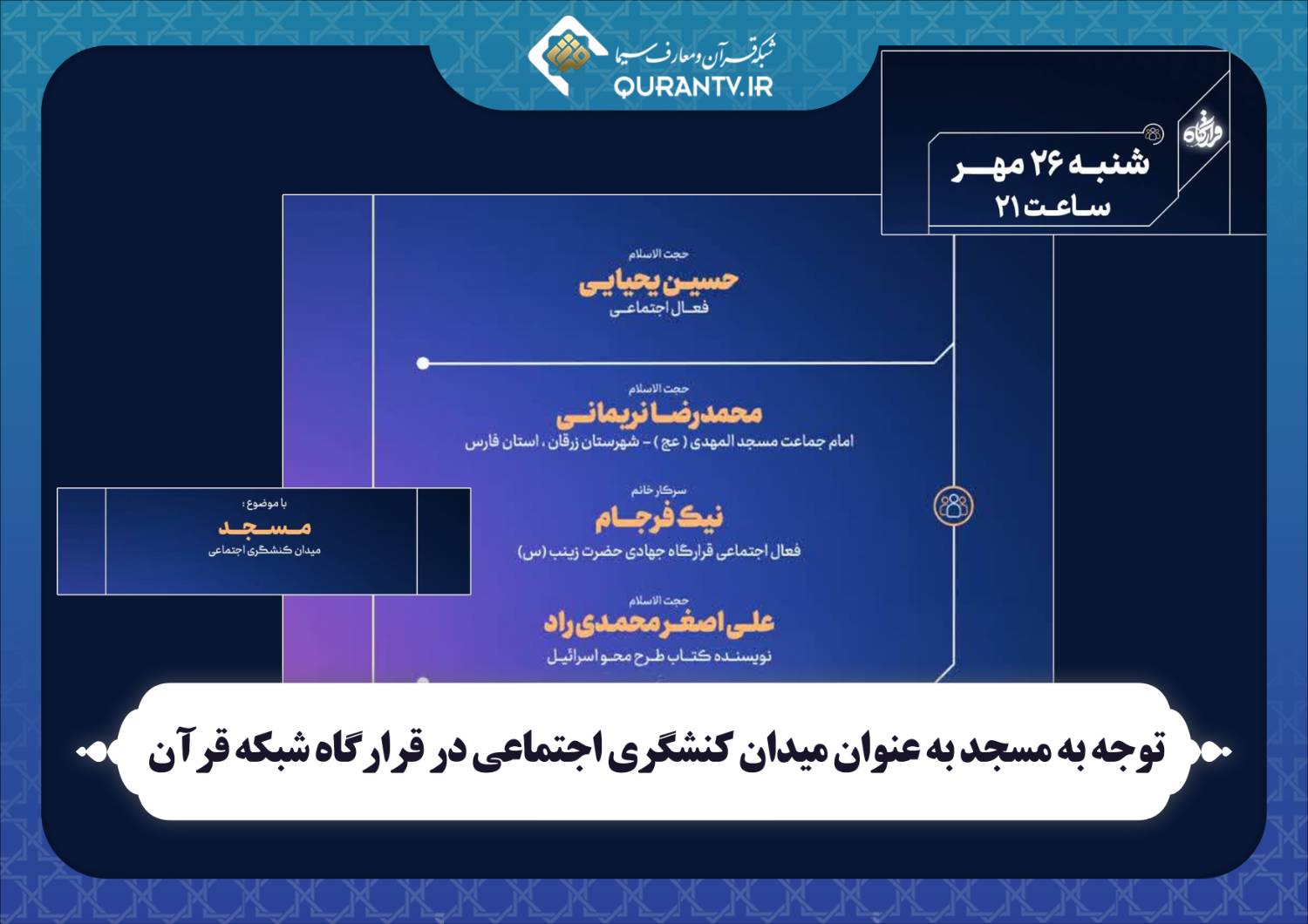 توجه به مسجد به عنوان میدان کنشگری اجتماعی در «قرارگاه» شبکه قرآن امشب،26 مهرماه، «قرارگاه» با موضوع مسجد میدان کنشگری اجتماعی از شبکه قرآن و معارف سیما پخش می شود. شنبه 26 مهر 1404 ادامه...