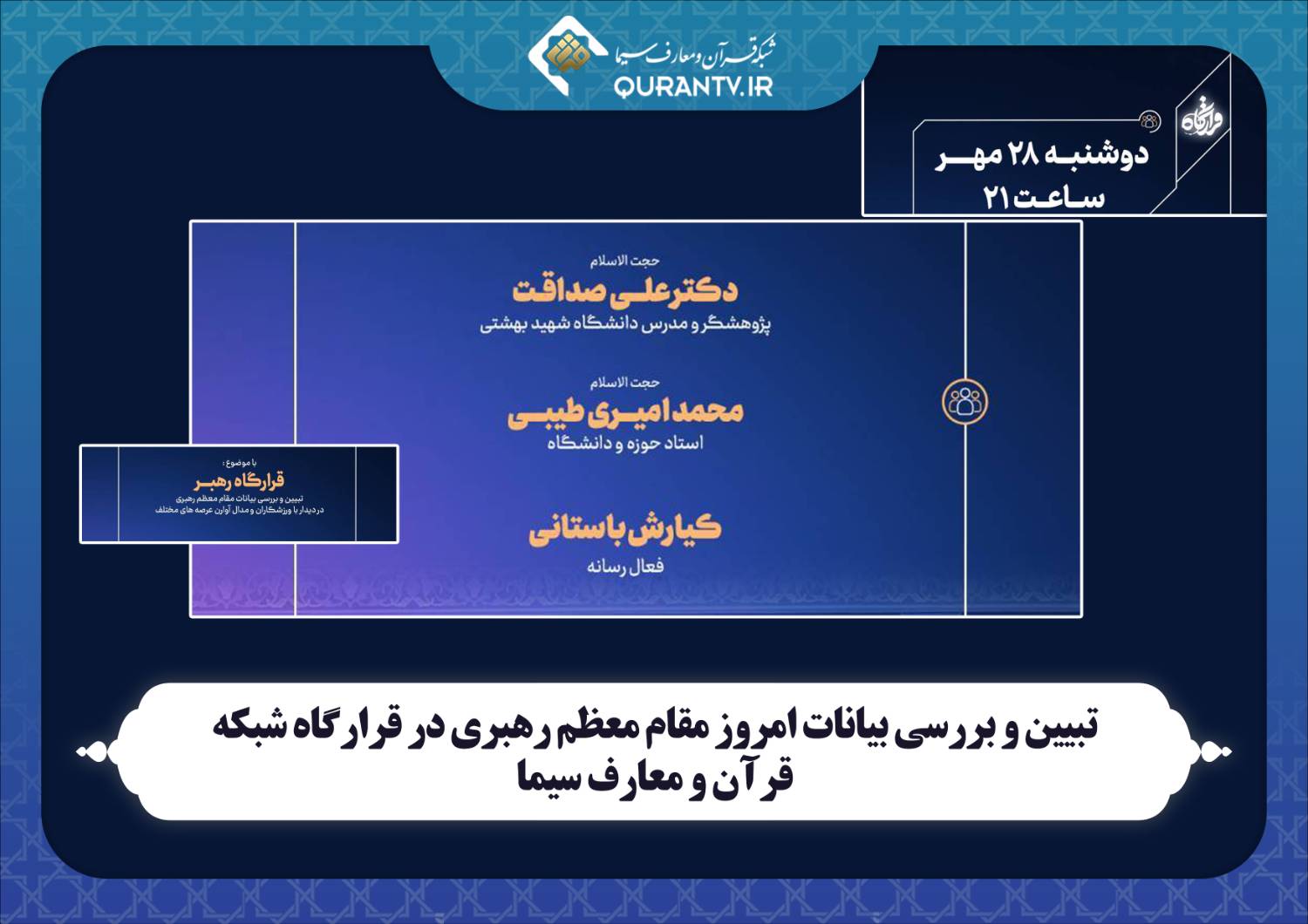 تبیین و بررسی بیانات امروز مقام معظم رهبری در «قرارگاه» شبکه قرآن و معارف برنامه «قرارگاه»، دوشنبه 28 مهرماه با موضوع تبیین و بررسی بیانات مقام معظم رهبری در دیدار با ورزشکاران و مدال آوران عرصه های مختلف از شبکه قرآن و معارف سیما پخش می شود. دو شنبه 28 مهر 1404 ادامه...