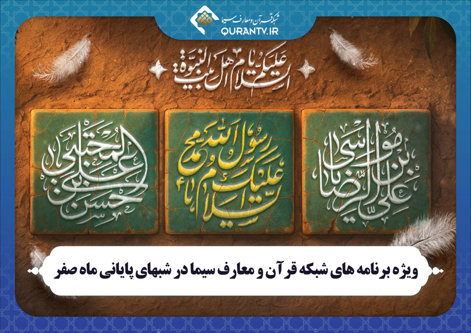 ویژه برنامه های شبکه قرآن و معارف سیما در شب های پایانی ماه صفر ویژه برنامه های «محفل انس با قرآن کریم»، «شبستان» و ارتباط مستقیم با حرم مطهر رضوی و پخش دعای توسل به صورت زنده از حرم امام رضا (ع) در آستانه رحلت نبی اکرم (ص) و شهادت امام حسن مجتبی (ع) و امام رضا (ع) از شبکه قرآن و معارف سیما پخش می شود. پنج شنبه 30 مرداد 1404 ادامه...