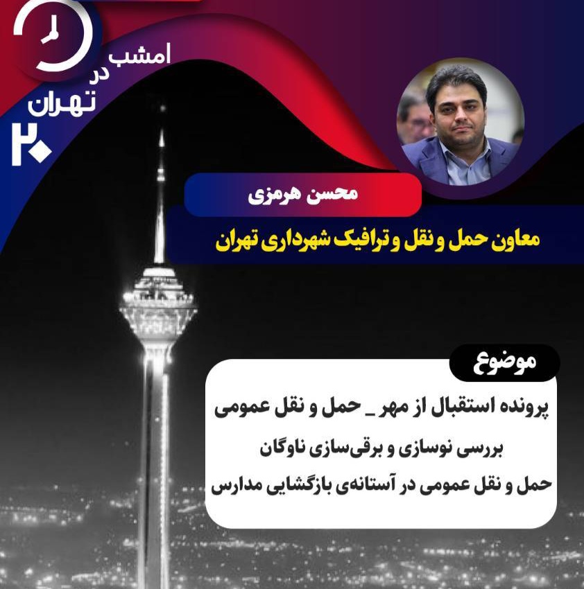 بررسی نوسازی و برقی سازی ناوگان حمل و نقل عمومی در «تهران ۲۰» برنامه «تهران ۲۰» امشب با حضور معاون حمل و نقل و ترافیک شهرداری تهران، از شبکه تهران پخش می شود. دو شنبه 31 شهریور 1404 ادامه...